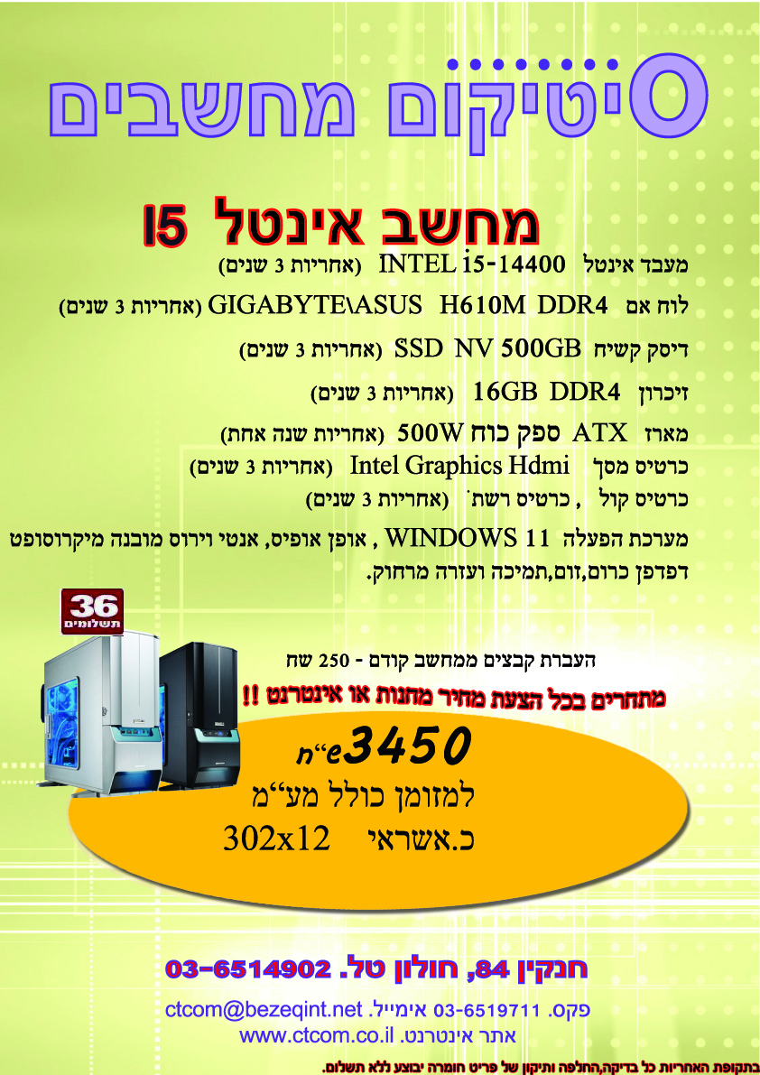 סיטיקום מחשבים - חנות מחשבים ומעבדת תיקונים משנת 1999,חנקין 84, חולון
