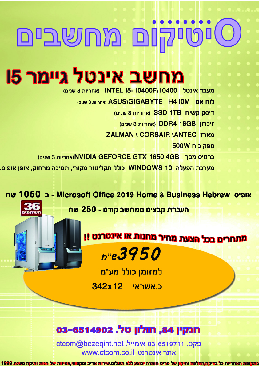 >> מחשב גיימר I5 , מחיר : 5950שח