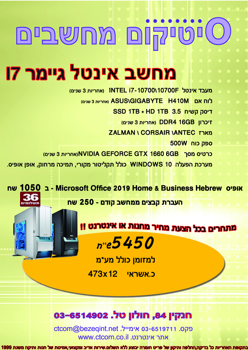 >> מחשב גיימר I7 - מחיר : 5450שח