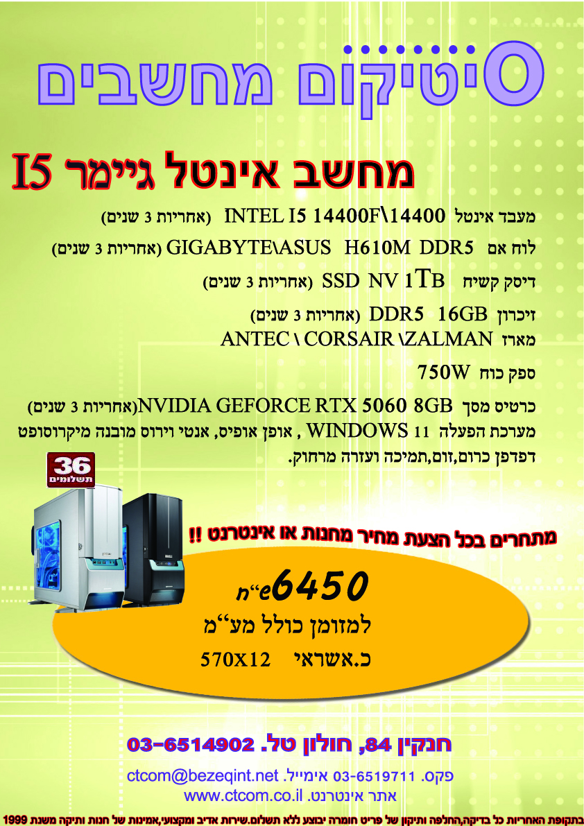 סיטיקום מחשבים - חנות מחשבים ומעבדת תיקונים משנת 1999,חנקין 84, חולון
