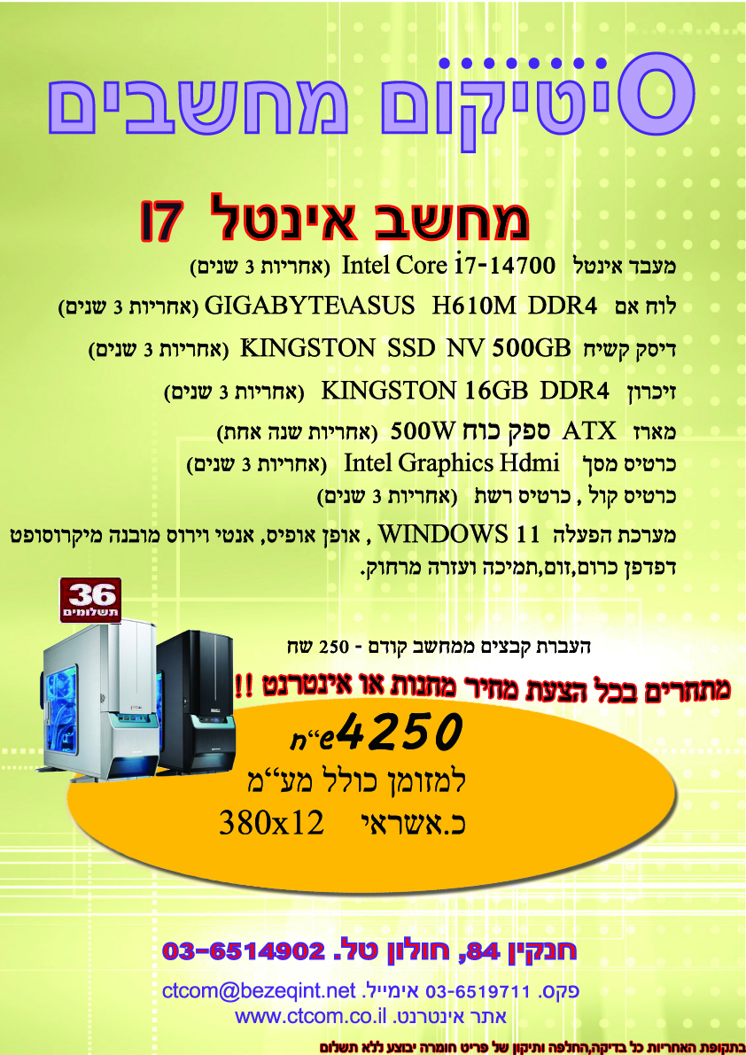 >> מחשב נייח אינטל i7-- מחיר : 4250שח